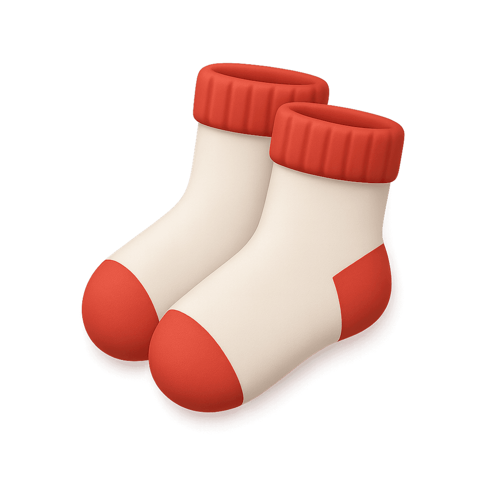A pair of soft, close-fitting coverings for the feet, typically made from cotton, wool, or synthetic fibers. Worn inside shoes to provide comfort, absorb sweat, and protect feet from friction.