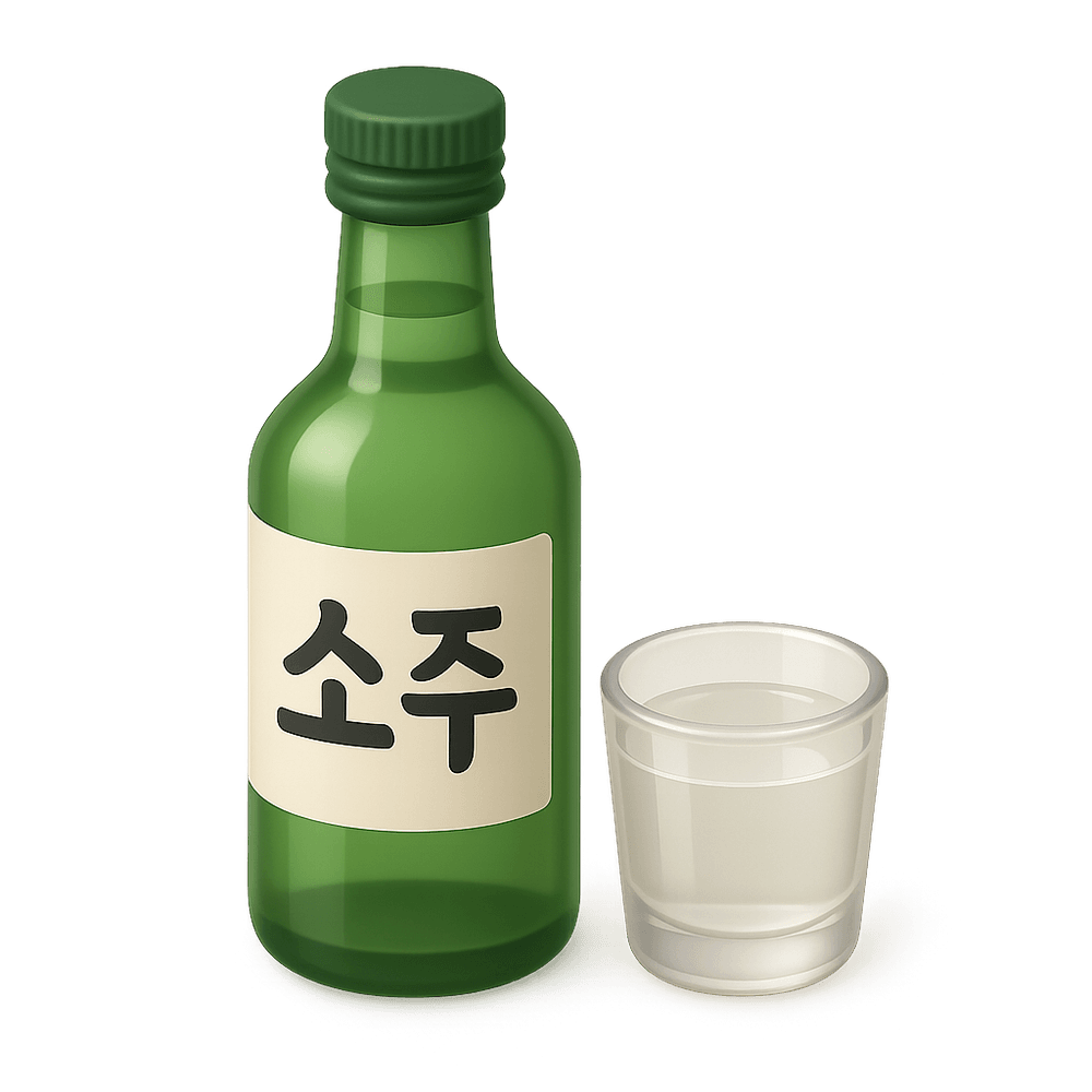 Soju is a clear, distilled alcoholic beverage from Korea, traditionally made from rice, wheat, or barley. It is known for its smooth taste and is often enjoyed in social and celebratory settings.