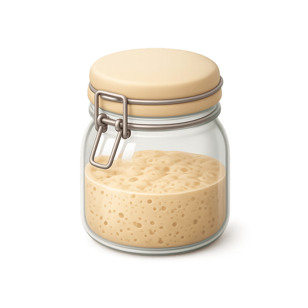 A glass container designed for cultivating and storing sourdough starter, essential for baking fresh, homemade sourdough bread. It helps maintain the right environment for fermentation and easy access for feeding and use.
