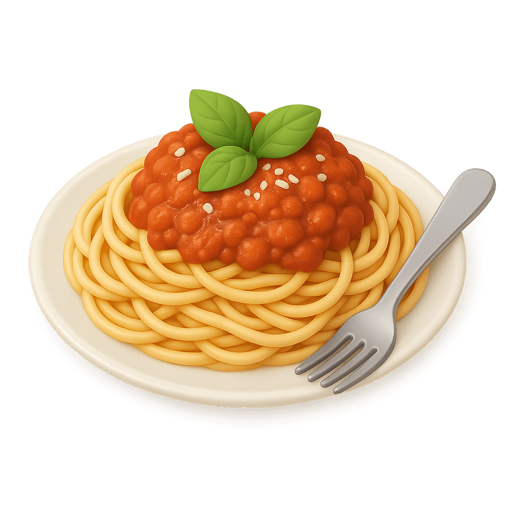 A classic Italian pasta dish featuring spaghetti topped with a rich, savory meat and tomato sauce, often garnished with Parmesan cheese. Popular worldwide, it is a staple of Italian cuisine and comfort food.