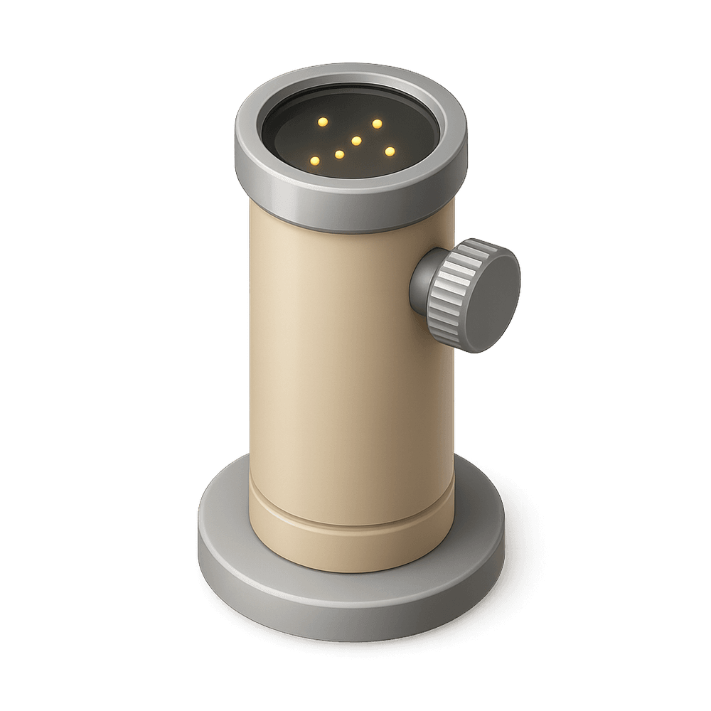 A spinthariscope is a scientific instrument used to observe individual nuclear disintegrations by detecting flashes of light produced when radioactive particles strike a phosphorescent screen. It was invented in 1903 and is often used for educational demonstrations of radioactivity.