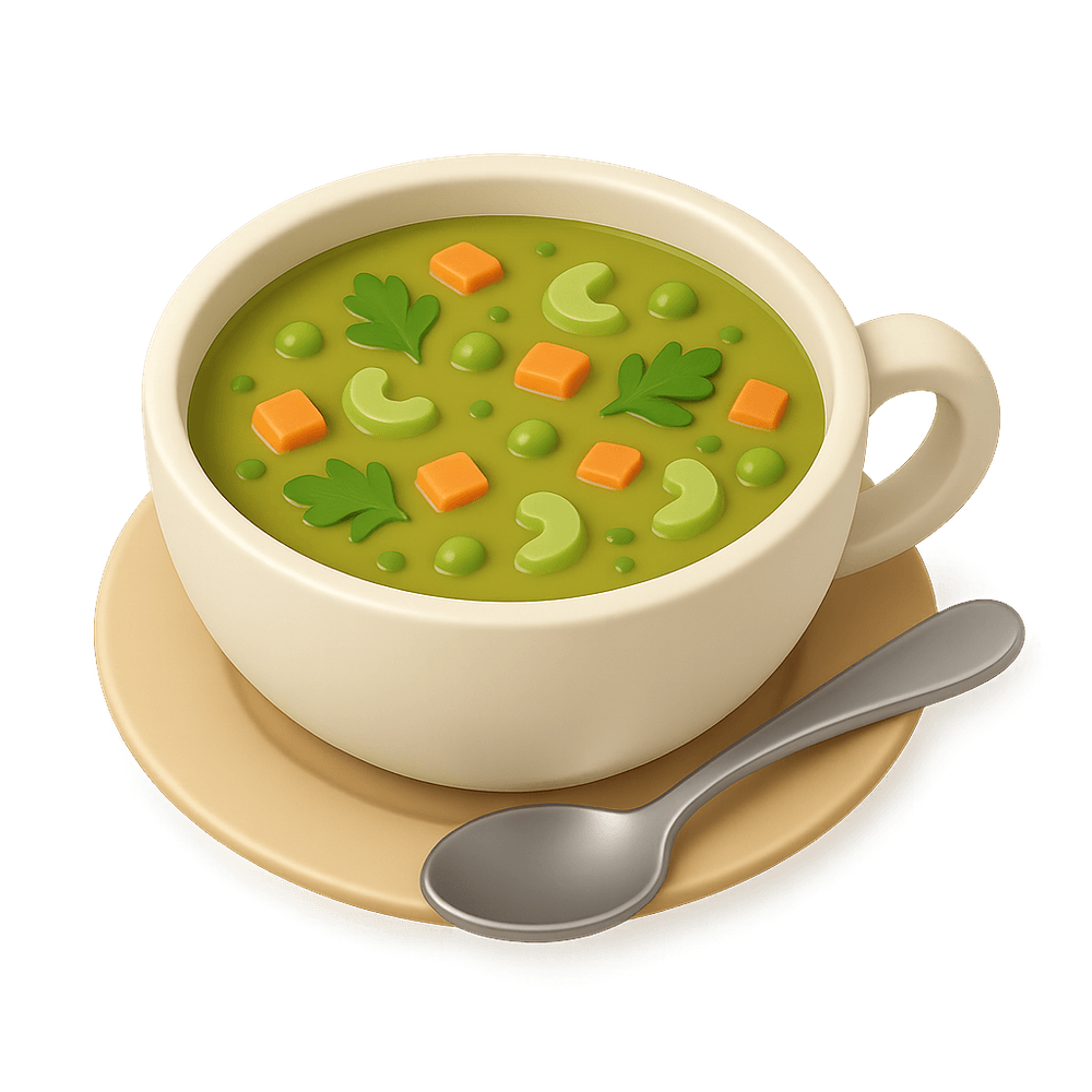 A hearty, comforting soup made from split peas, vegetables, and seasonings. Often enjoyed as a nutritious meal, split pea soup is rich in protein and fiber, making it a popular choice for both vegetarians and meat-eaters.