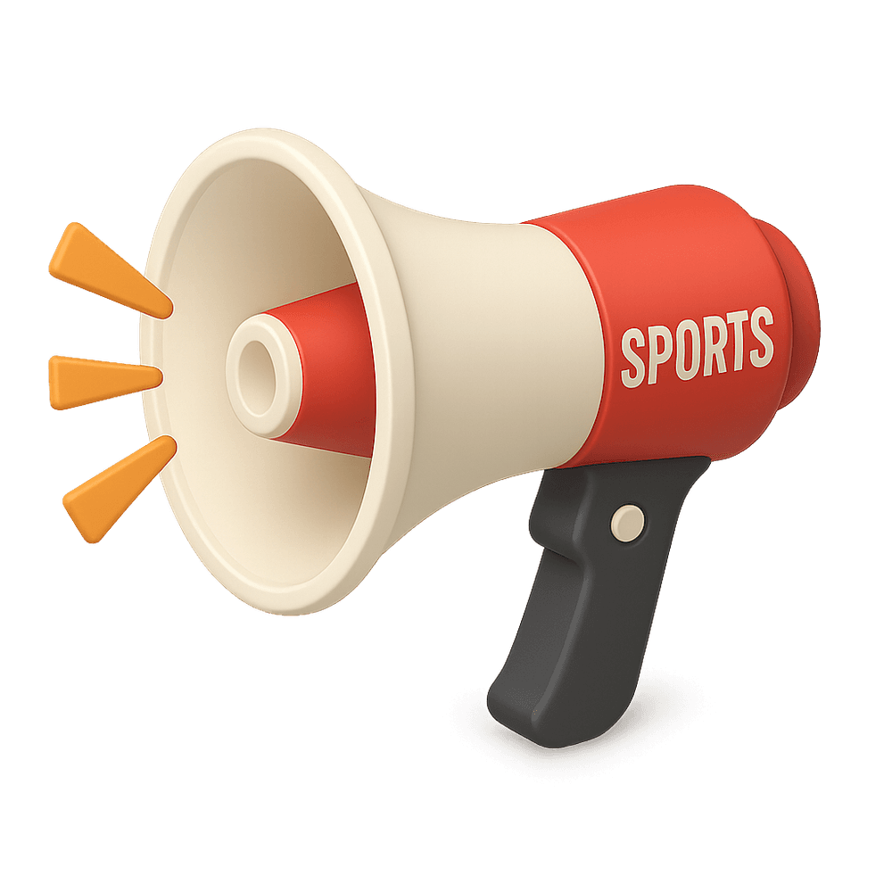 A handheld device used to amplify a person's voice, commonly used by coaches, referees, or event organizers at sports events to address large crowds or teams.