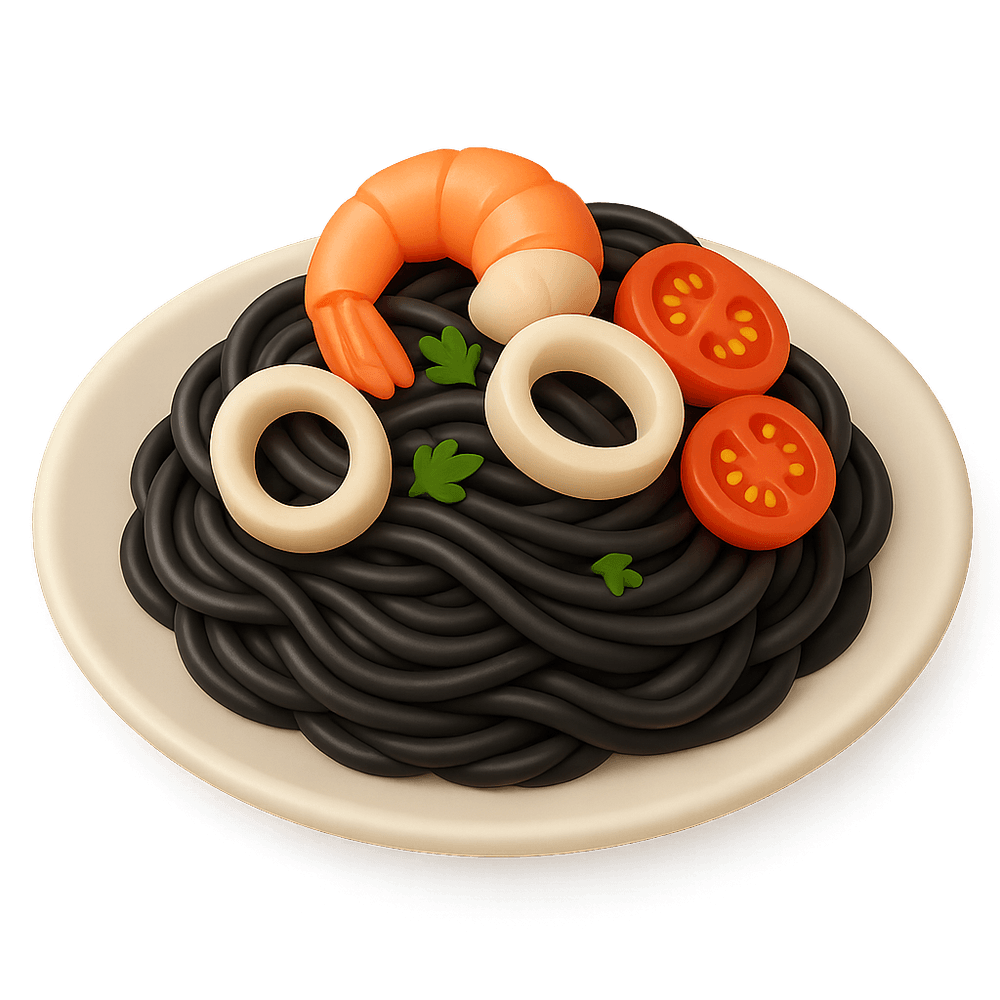 Squid Ink Pasta is a dramatic Italian dish featuring noodles infused with black squid ink, giving them a unique briny flavor and striking dark color. Popular in Mediterranean cuisine, it is often paired with seafood and savory sauces.