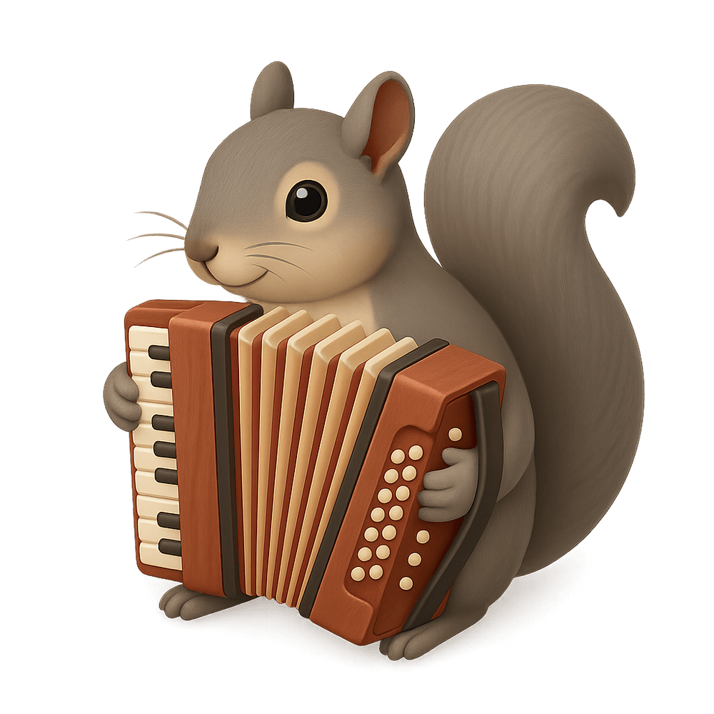 A whimsical scene featuring a squirrel skillfully playing an accordion, blending elements of fantasy and imagination. This playful object captures the charm of animals engaging in human-like activities, perfect for sparking creativity and delight.