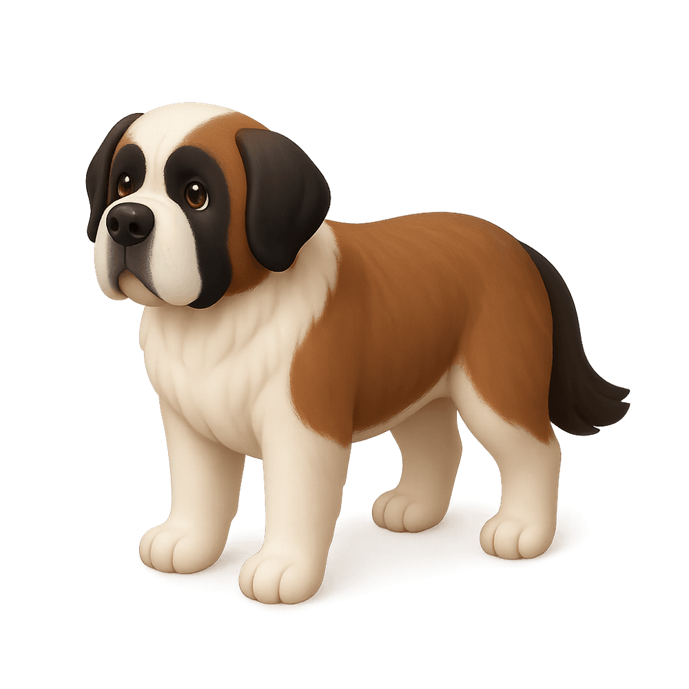 The St. Bernard is a large, gentle dog breed originally bred for rescue work in the Swiss Alps. Known for its strength, loyalty, and friendly temperament, it is often recognized by its thick fur and distinctive markings.