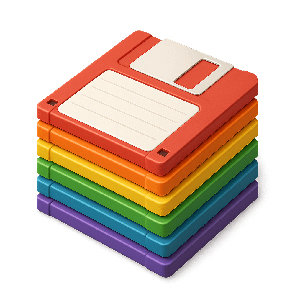 A stack of floppy disks, once a common data storage medium for computers, now considered a retro technology. These magnetic disks were used to store and transfer files before the rise of CDs, USB drives, and cloud storage.
