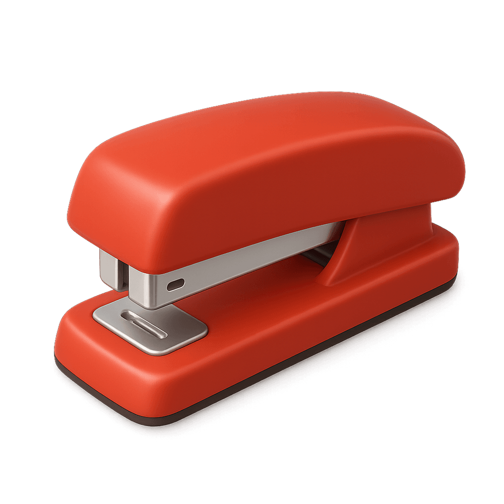 A stapler is a handheld or desktop device used to fasten sheets of paper together by driving a metal staple through the sheets and folding the ends. Commonly found in offices, schools, and workplaces, it is an essential tool for organizing documents.