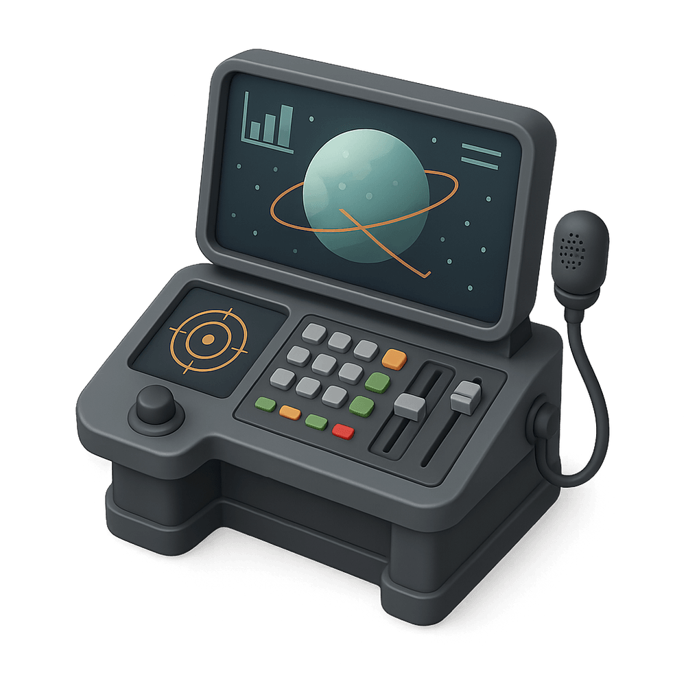 A Starship Command Console is a high-tech control interface used to operate and navigate a spacecraft. It features advanced displays, input panels, and communication systems, enabling crew members to manage ship functions, monitor systems, and coordinate missions in space environments.