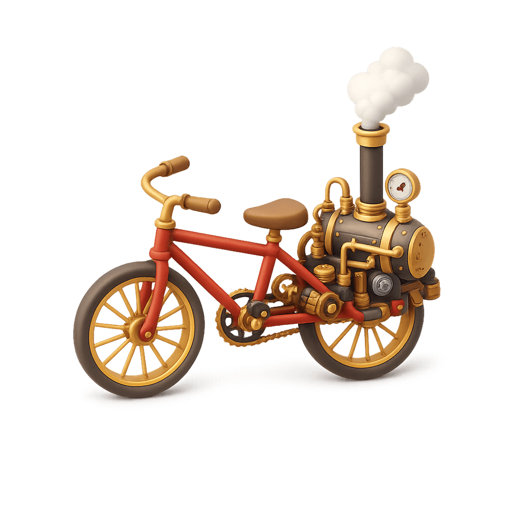A unique bicycle powered by a compact steam engine, combining Victorian-era technology with personal transportation. This inventive vehicle showcases early mechanical innovation and offers a retro-futuristic riding experience.