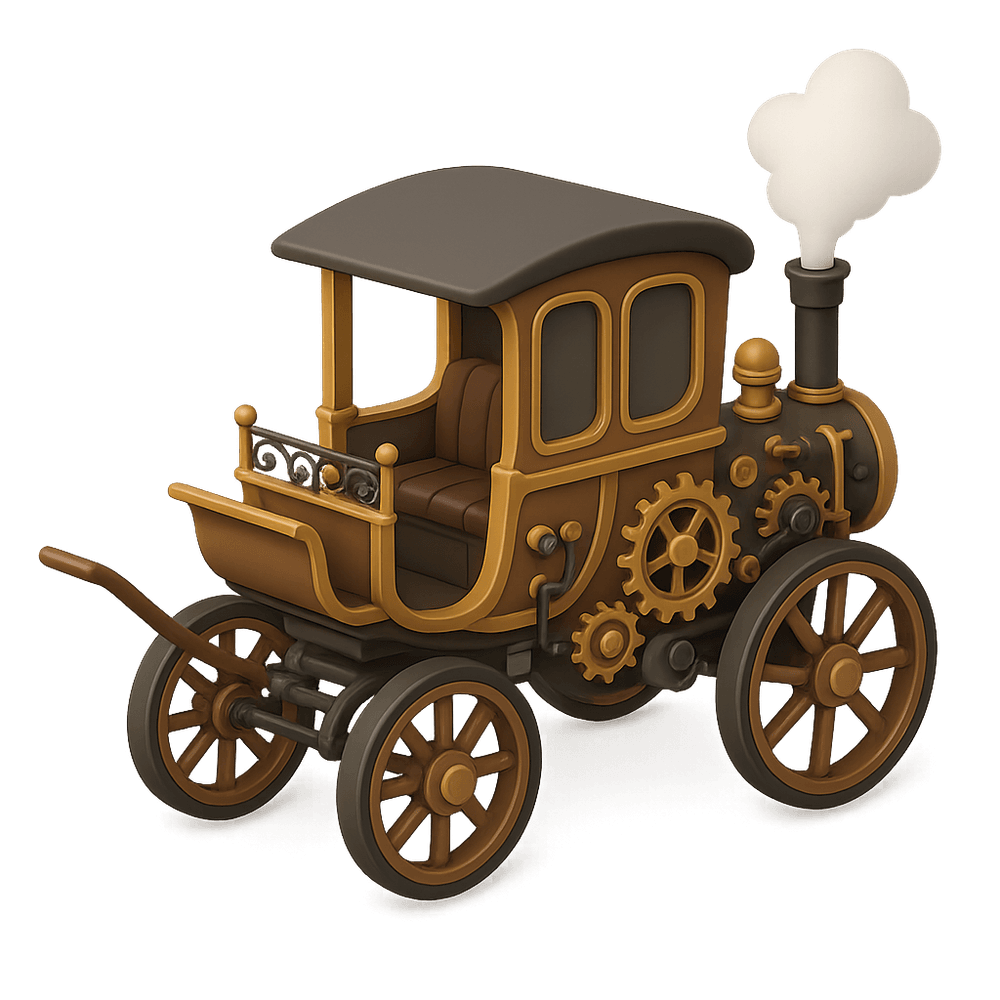 A Steampunk Carriage is a fantastical vehicle inspired by Victorian-era design, featuring brass fittings, exposed gears, and steam-powered machinery. It combines classic elegance with imaginative technology, making it a unique mode of transport in alternate history or fantasy settings.