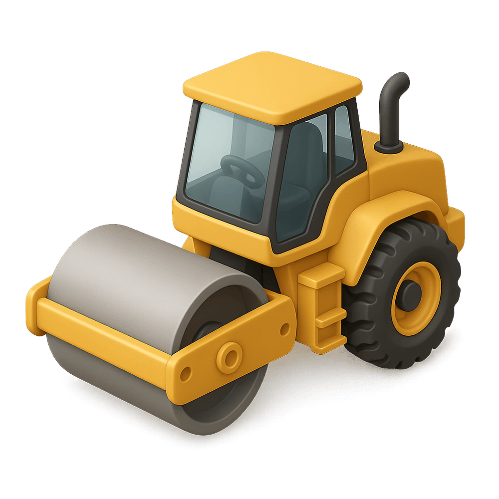 A steamroller is a heavy construction vehicle equipped with a large cylindrical roller, used to flatten and smooth surfaces such as roads during construction and maintenance projects.