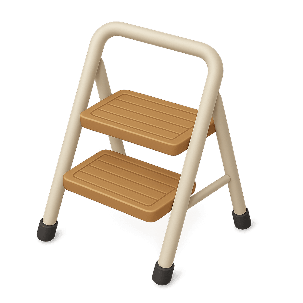 A stepping stool is a small, portable platform with one or two steps, designed to help people reach higher places safely in everyday environments such as homes, offices, or shops.