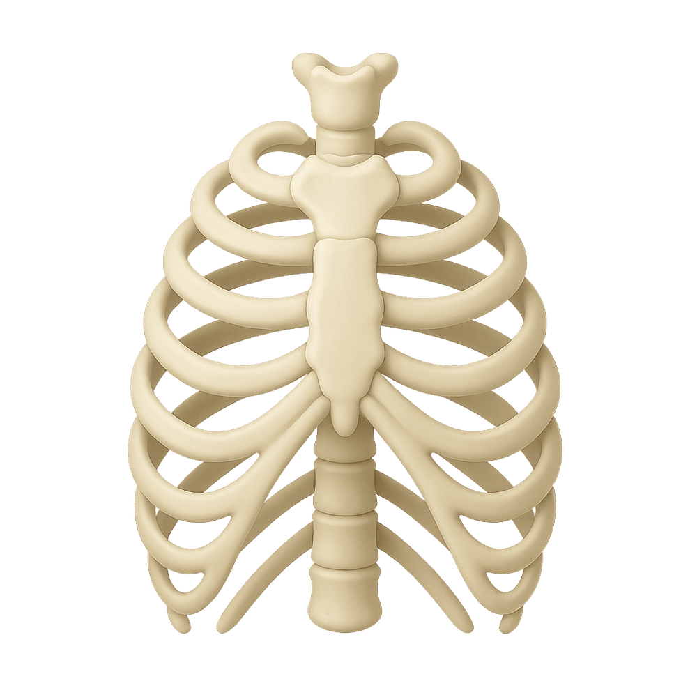 The sternum, also known as the breastbone, is a long, flat bone located in the center of the chest. It connects to the ribs via cartilage and helps protect vital organs such as the heart and lungs.
