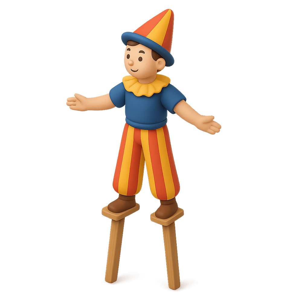 A stilt walker is a performer who entertains audiences by walking on tall stilts, often seen at festivals, parades, and events. Their impressive height and colorful costumes make them a popular attraction for both children and adults.