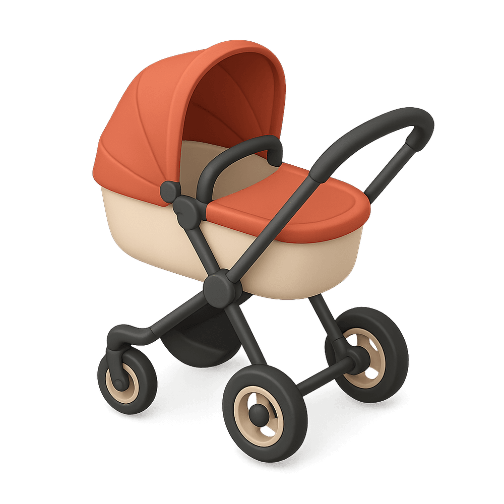 A stroller is a wheeled device designed to safely transport infants or young children, typically featuring a seat, harness, and sunshade for comfort and convenience during everyday outings.