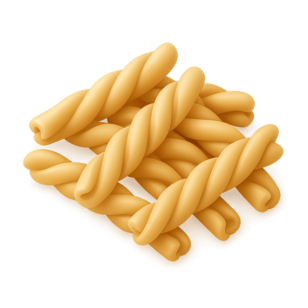 Strozzapreti Pasta is a traditional Italian pasta known for its hand-rolled, twisted shape. Often served with rich sauces, it is a staple in Italian cuisine and offers a chewy, satisfying texture.