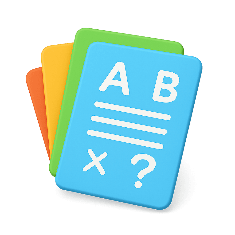 A set of cards designed to help individuals study and memorize information, often used for learning vocabulary, facts, or concepts. Each card typically has a question or prompt on one side and the answer on the other.