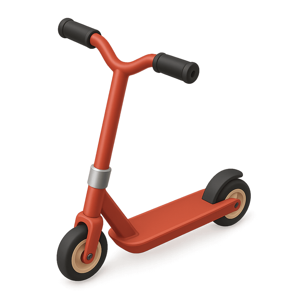 A stunt scooter is a lightweight, durable scooter designed for performing tricks and stunts at skate parks or on the street. It features reinforced components and a fixed handlebar for stability during jumps and spins.