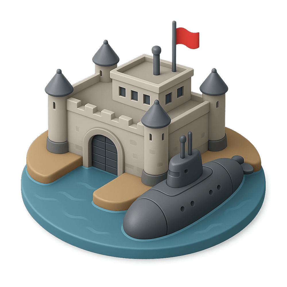 A submarine base is a secure, often fortified facility located near or under water, designed for the docking, maintenance, and deployment of submarines. These bases are critical for naval operations and can be found in coastal or underwater locations.