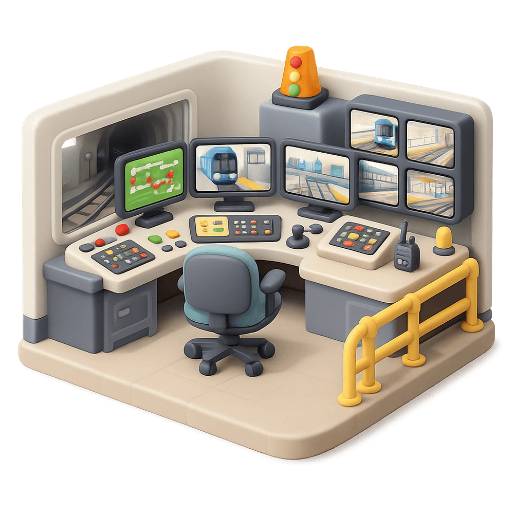 A subway control room is a secure facility within a subway system where operators monitor and manage train movements, signals, and communications to ensure safe and efficient transit operations.