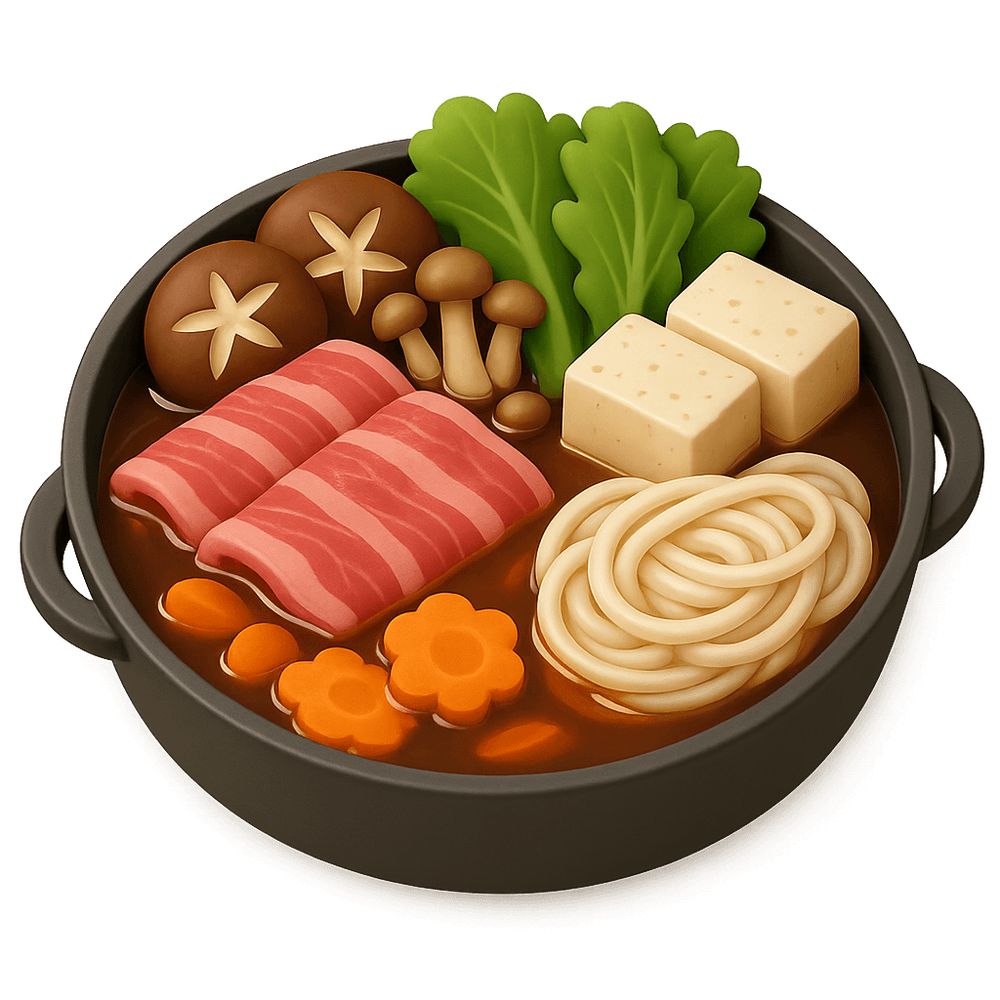 Sukiyaki is a traditional Japanese hot pot dish featuring thinly sliced beef, vegetables, tofu, and noodles simmered in a sweet and savory soy-based broth. It is often enjoyed as a communal meal, especially during gatherings and celebrations.