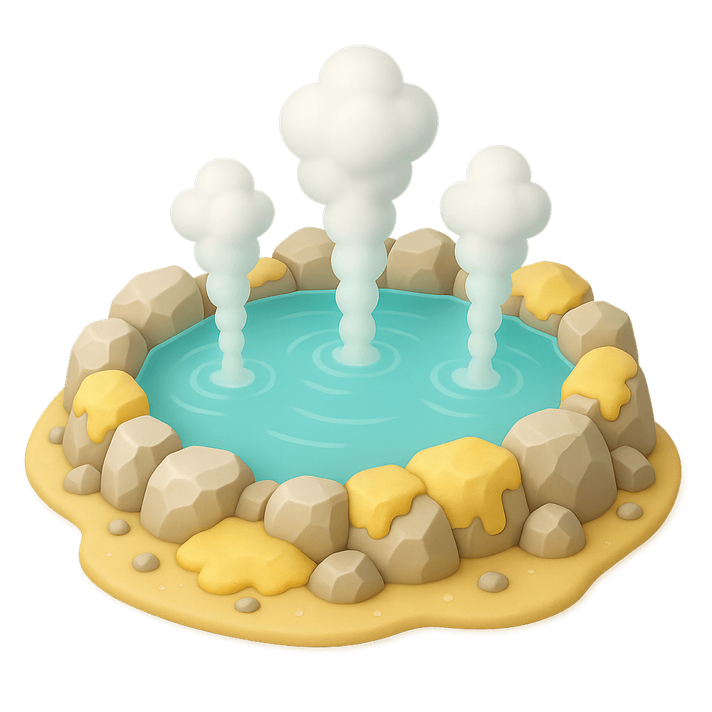 A sulphur spring is a natural water source rich in dissolved minerals, especially sulfur compounds. Known for its distinctive smell and therapeutic properties, these springs are often found in volcanic or geothermal regions and are popular for outdoor bathing and wellness tourism.