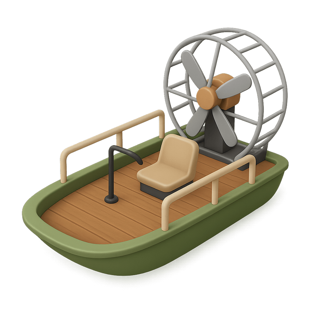The Swamp Skimmer is a lightweight, flat-bottomed vehicle designed for traversing wetlands and marshy terrain. Its elevated platform and wide hull allow it to glide smoothly over shallow waters and dense vegetation, making it ideal for exploration, transport, and rescue operations in swampy environments.