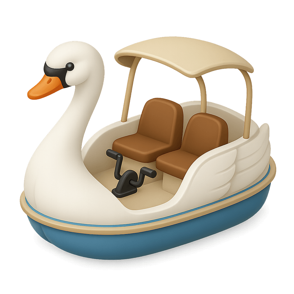 A Swan Boat is a pedal-powered watercraft designed for leisurely rides, often found in parks and recreational lakes. Shaped like a swan, it offers a whimsical and relaxing experience for families, couples, and tourists.