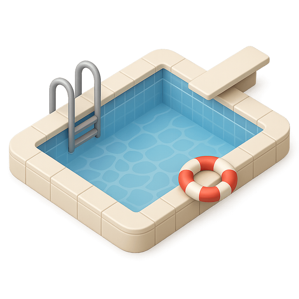 A swimming pool is a large, artificial basin filled with water, designed for swimming, recreation, exercise, or relaxation. Commonly found in homes, hotels, and public facilities, it serves as a popular spot for leisure and sports activities.