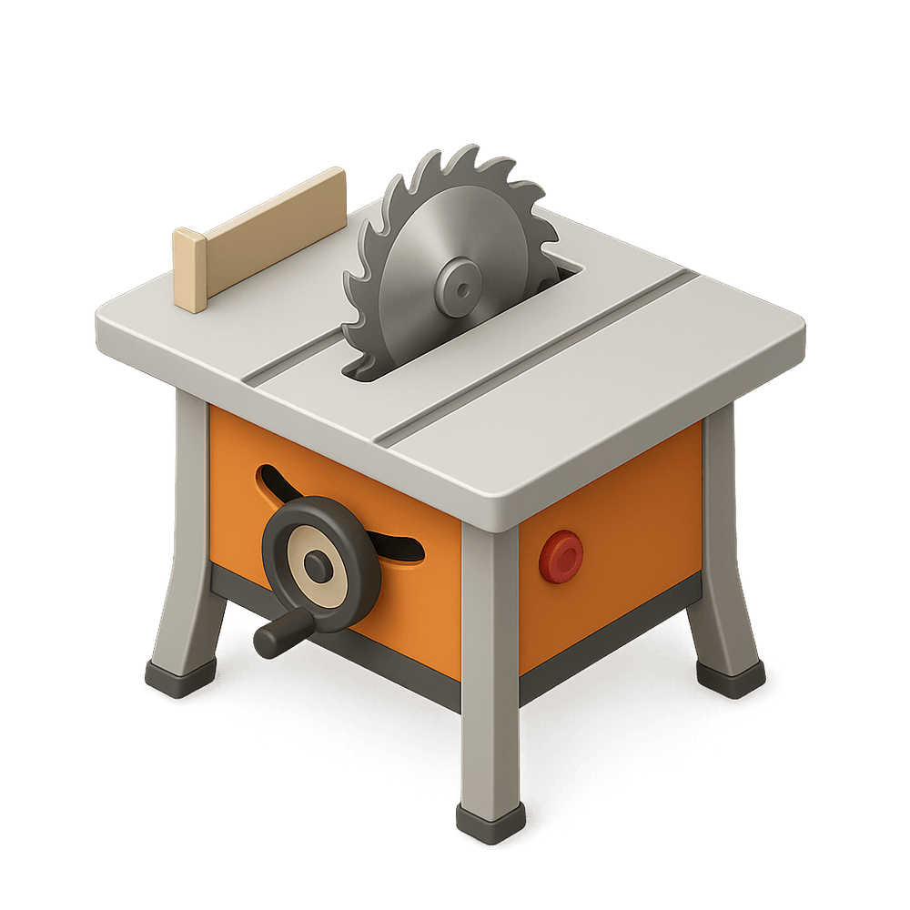 A table saw is a powerful woodworking tool featuring a circular saw blade mounted on an arbor, driven by an electric motor. It is used for making precise straight cuts in wood and other materials, commonly found in workshops and construction sites.