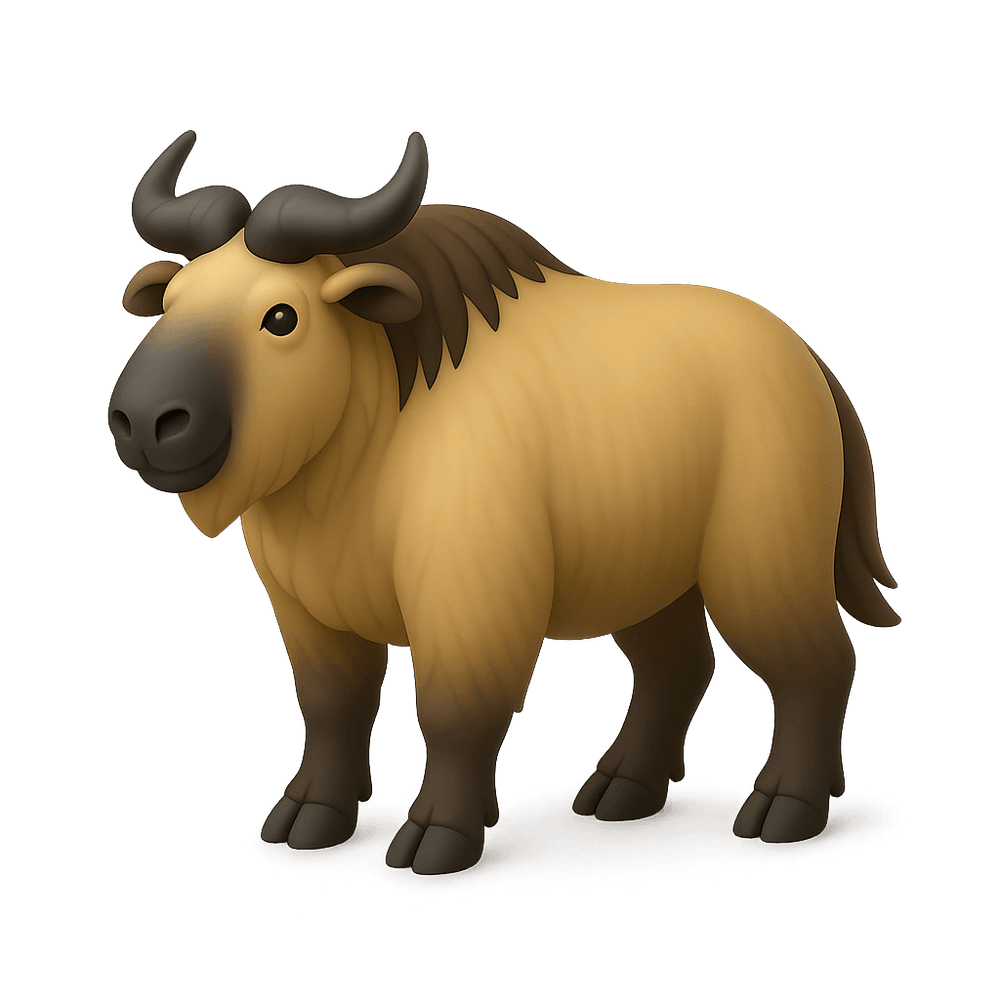 The takin is a large, muscular mammal native to the eastern Himalayas and western China. Known for its thick, golden or brownish fur and distinctive, arched nose, the takin is well-adapted to mountainous terrain and is a social, herbivorous animal often found in herds.