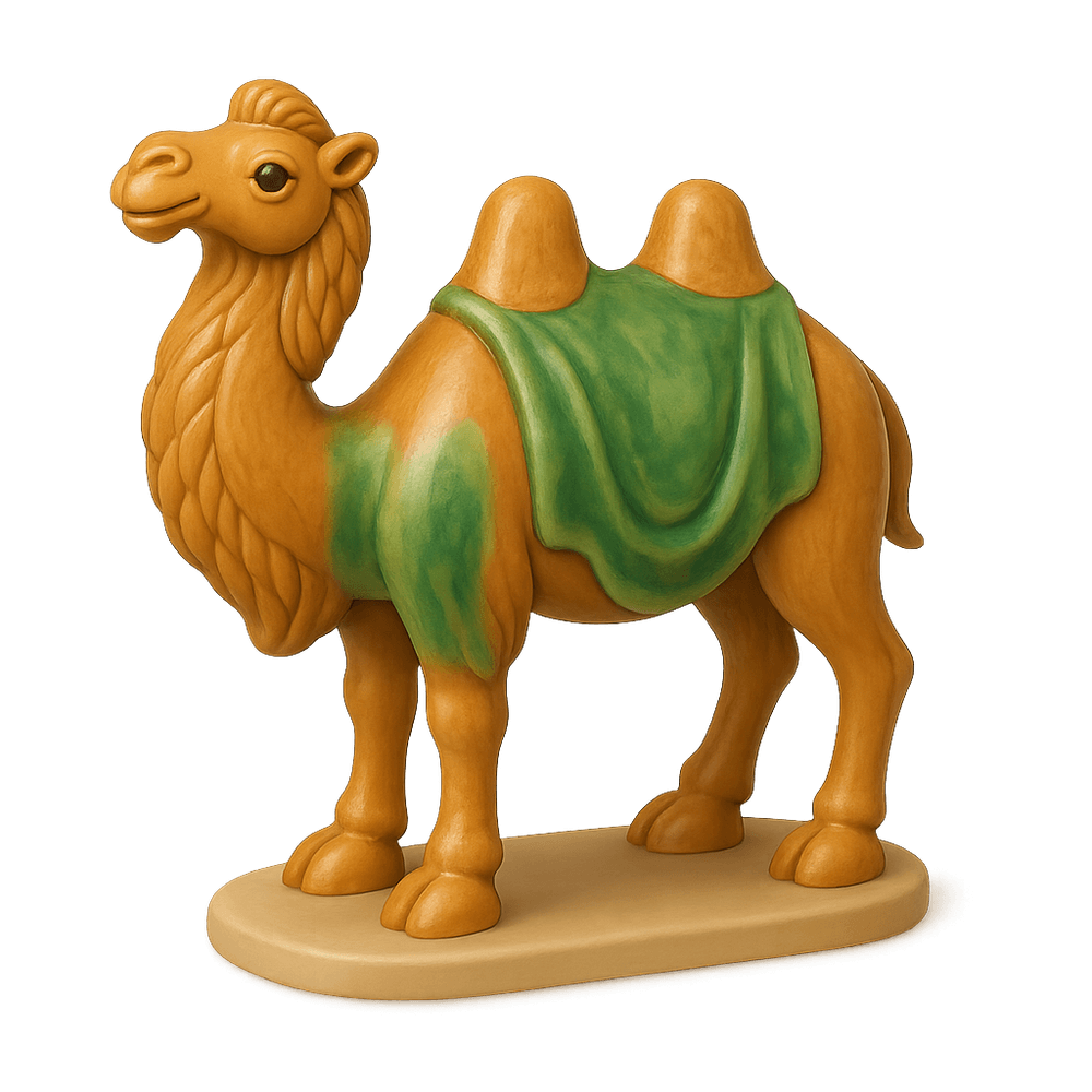 A Tang Dynasty Camel is a ceramic figurine from ancient China, often used as a tomb artifact. These camels were crafted during the Tang Dynasty (618–907 AD) and symbolize the importance of trade along the Silk Road, reflecting the era's cultural exchange and prosperity.