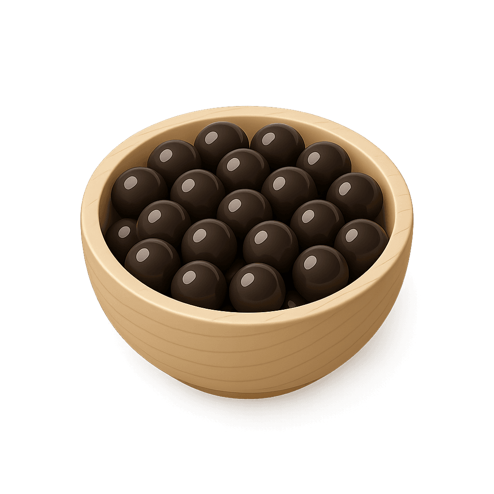 Tapioca pearls are small, chewy spheres made from tapioca starch, commonly used in bubble tea and desserts. They are known for their unique texture and ability to absorb flavors.