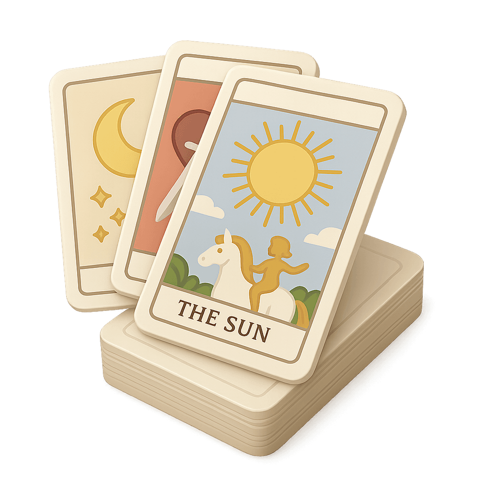 A tarot deck is a set of illustrated cards used for divination, self-reflection, and spiritual guidance. Each deck typically contains 78 cards, including the Major and Minor Arcana, and is often used in hobbies such as card reading and collecting.