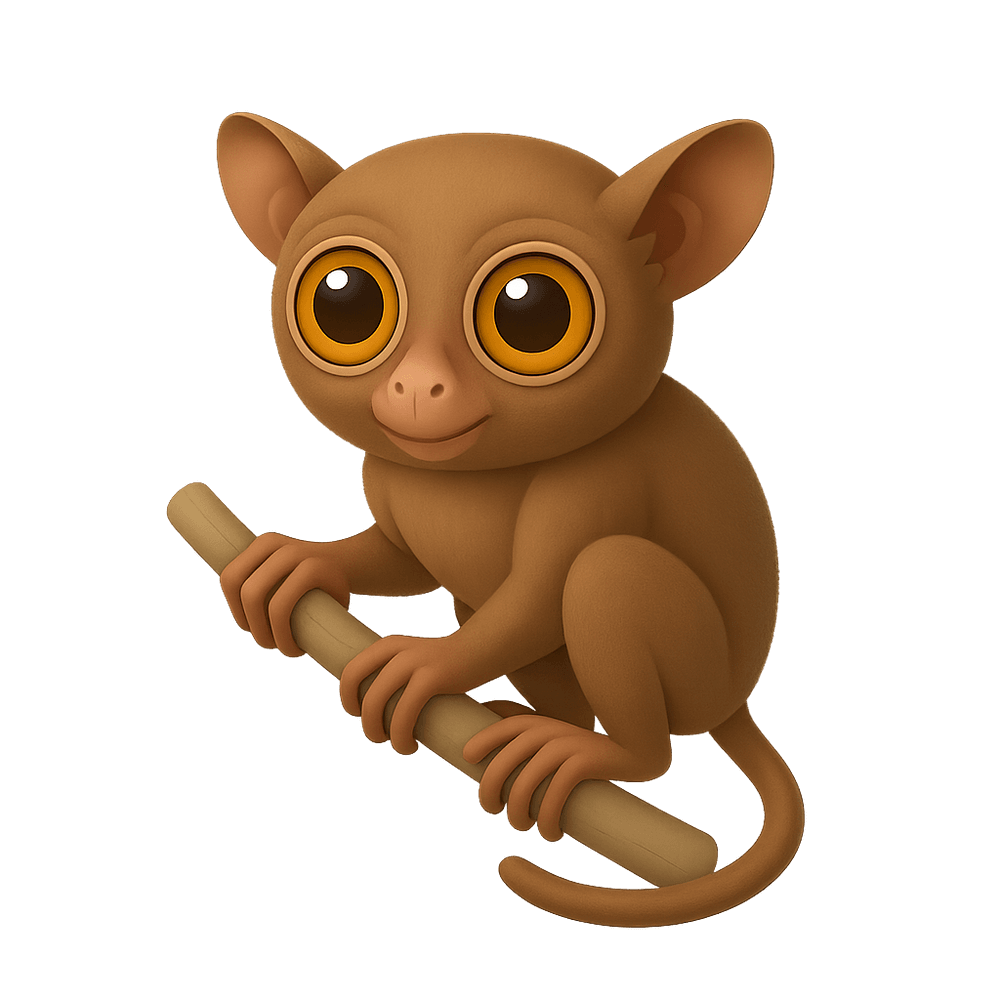 A small, nocturnal primate native to Southeast Asia, known for its large eyes and ability to leap between trees. Tarsiers are insectivorous and are recognized for their unique appearance and agile movements.