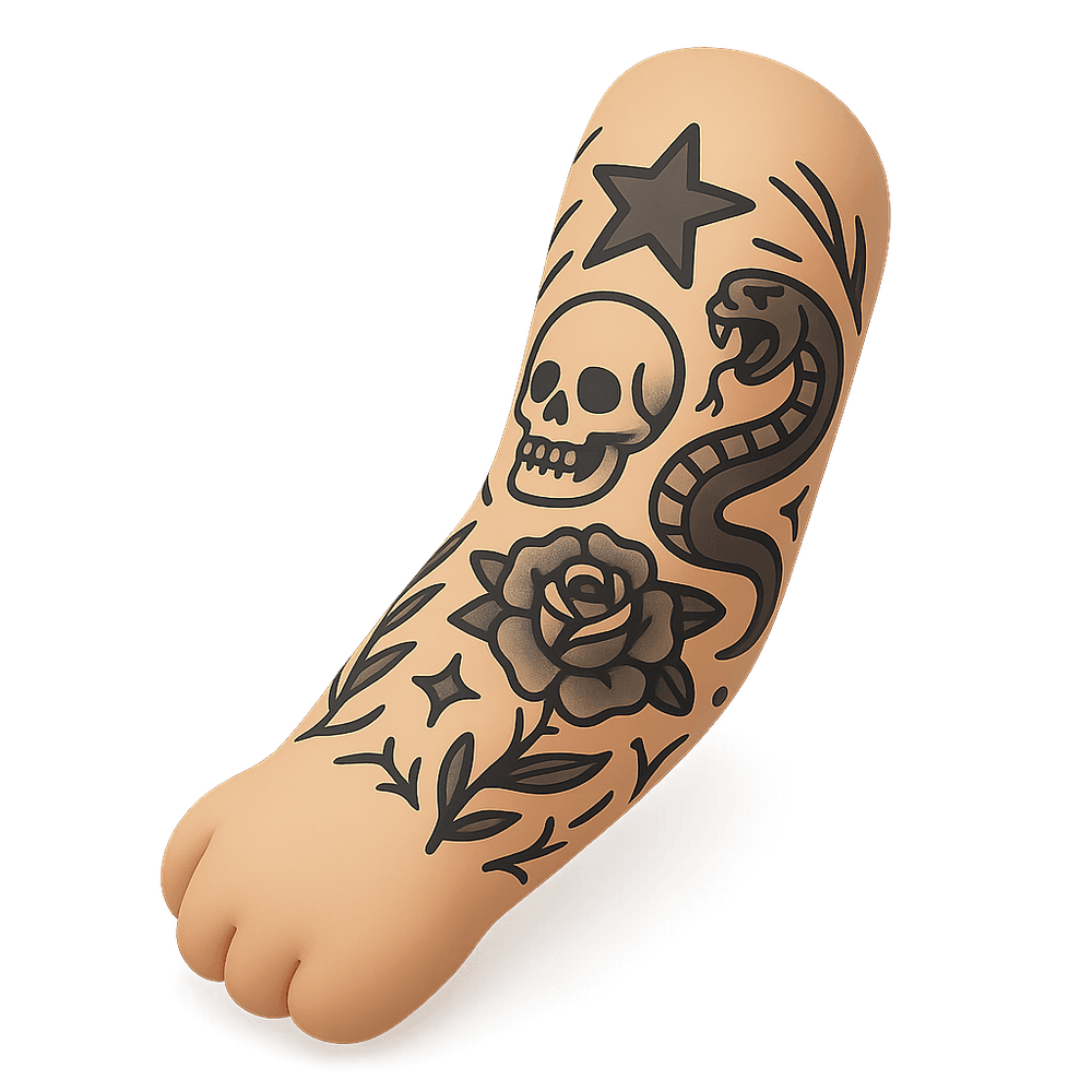 A tattoo sleeve is a large tattoo or collection of smaller tattoos that covers most or all of a person's arm, typically from the shoulder to the wrist. It is a bold form of body art and self-expression, often featuring intricate designs and themes.