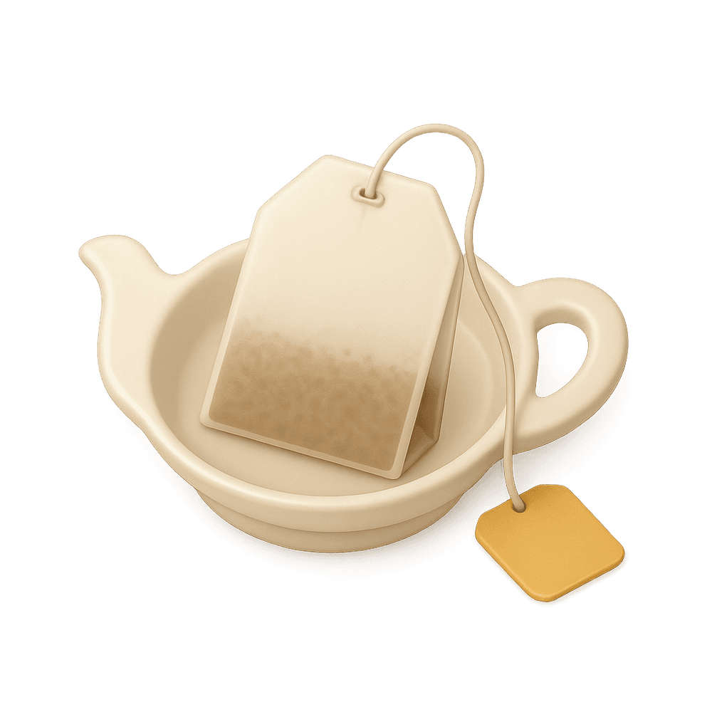 A tea bag holder is a small dish or tray designed to hold used tea bags after steeping, keeping surfaces clean and tidy. It is a practical accessory for tea drinkers, often found in kitchens or at tea settings.