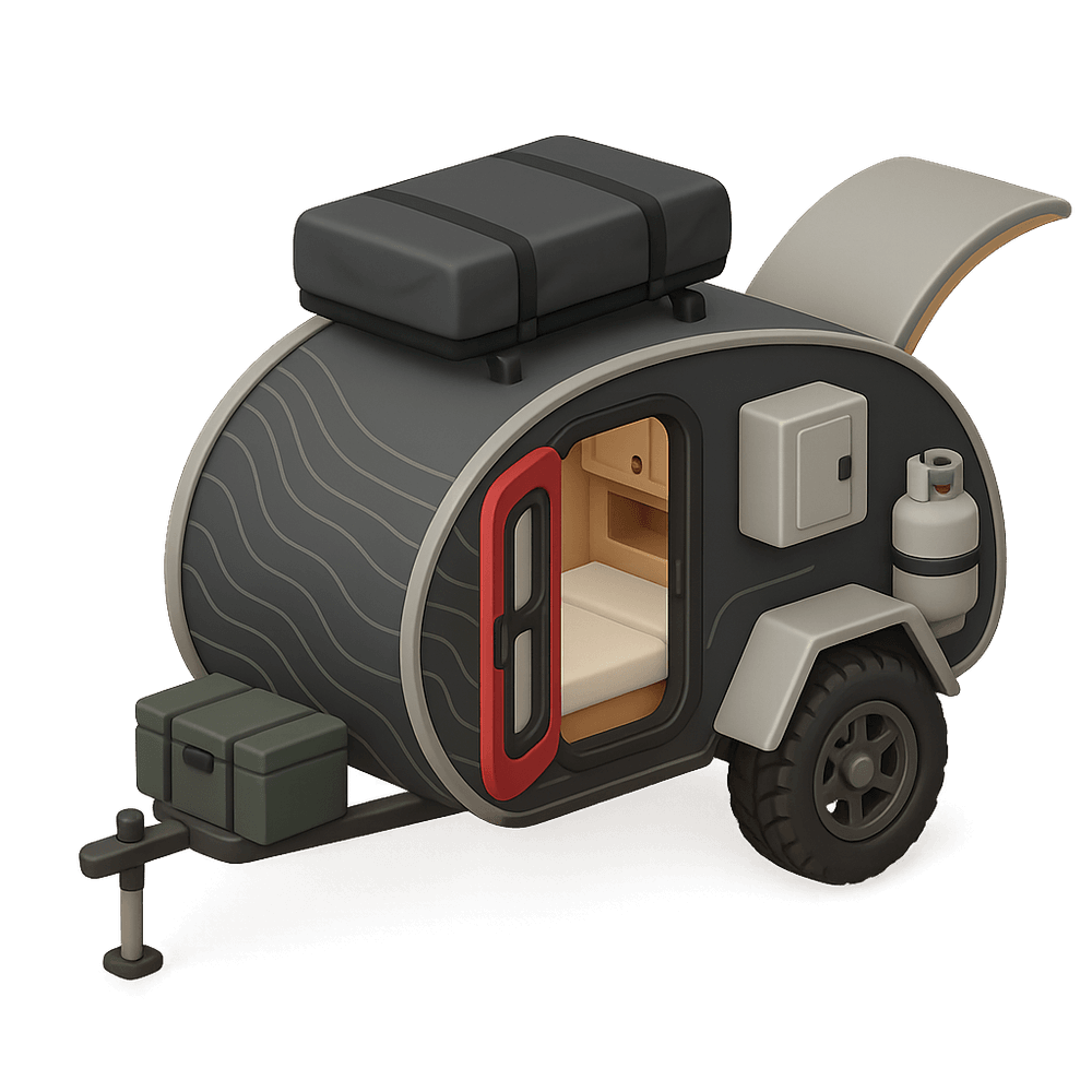 A teardrop trailer is a compact, lightweight travel trailer with a distinctive teardrop shape, designed for easy towing by most vehicles. It typically features a sleeping area and a small kitchenette, making it ideal for camping and road trips.
