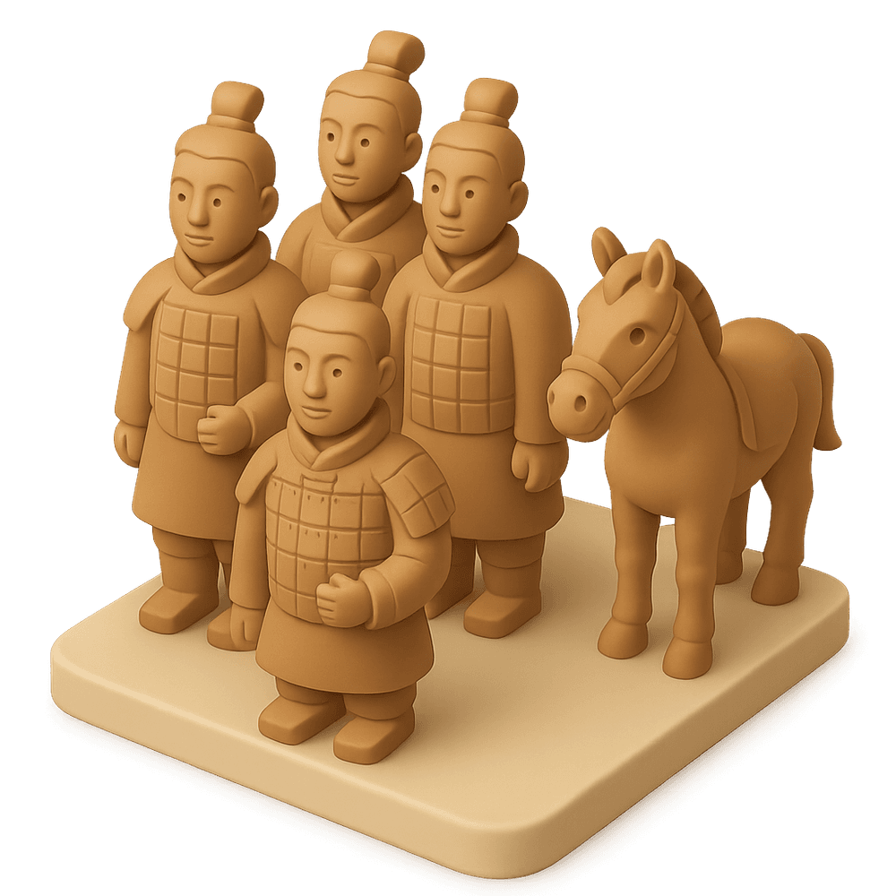 A vast collection of life-sized clay soldiers and horses buried with China's first Emperor, Qin Shi Huang, to protect him in the afterlife. Discovered in 1974, the Terracotta Army is a remarkable archaeological find and a symbol of ancient Chinese artistry and military power.