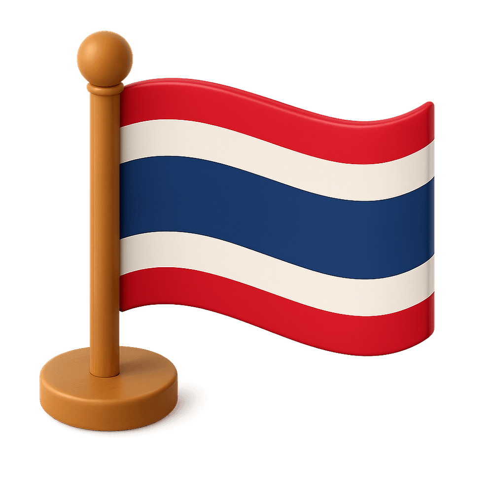 The Thai Flag, also known as the 'Tricolor Flag,' features horizontal stripes of red, white, and blue. It symbolizes the nation of Thailand, representing the land, religion, and monarchy. The flag is a national symbol and is used in official and cultural contexts throughout the country.