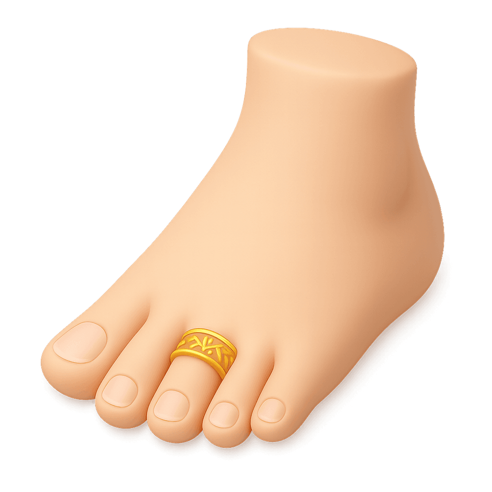 A toe ring is a small, decorative ring designed to be worn on one of the toes, often used as a fashion accessory to complement sandals or barefoot looks. Popular in many cultures, especially in South Asia, toe rings can be made from various materials such as silver, gold, or other metals, and may feature simple or intricate designs.