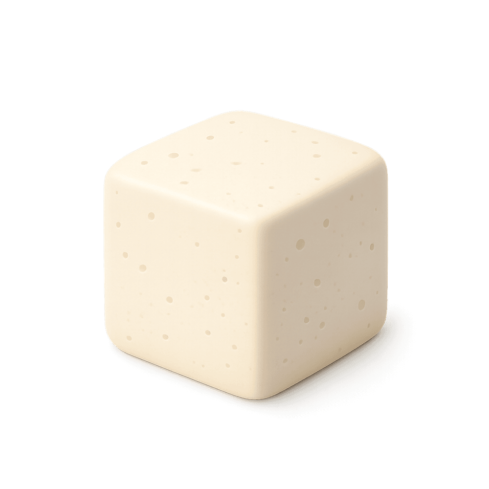 A Tofu Cube is a small, soft block made from soybeans, commonly used in a variety of dishes for its mild flavor and high protein content. It is a staple in many Asian cuisines and is popular among vegetarians and vegans as a plant-based protein source.