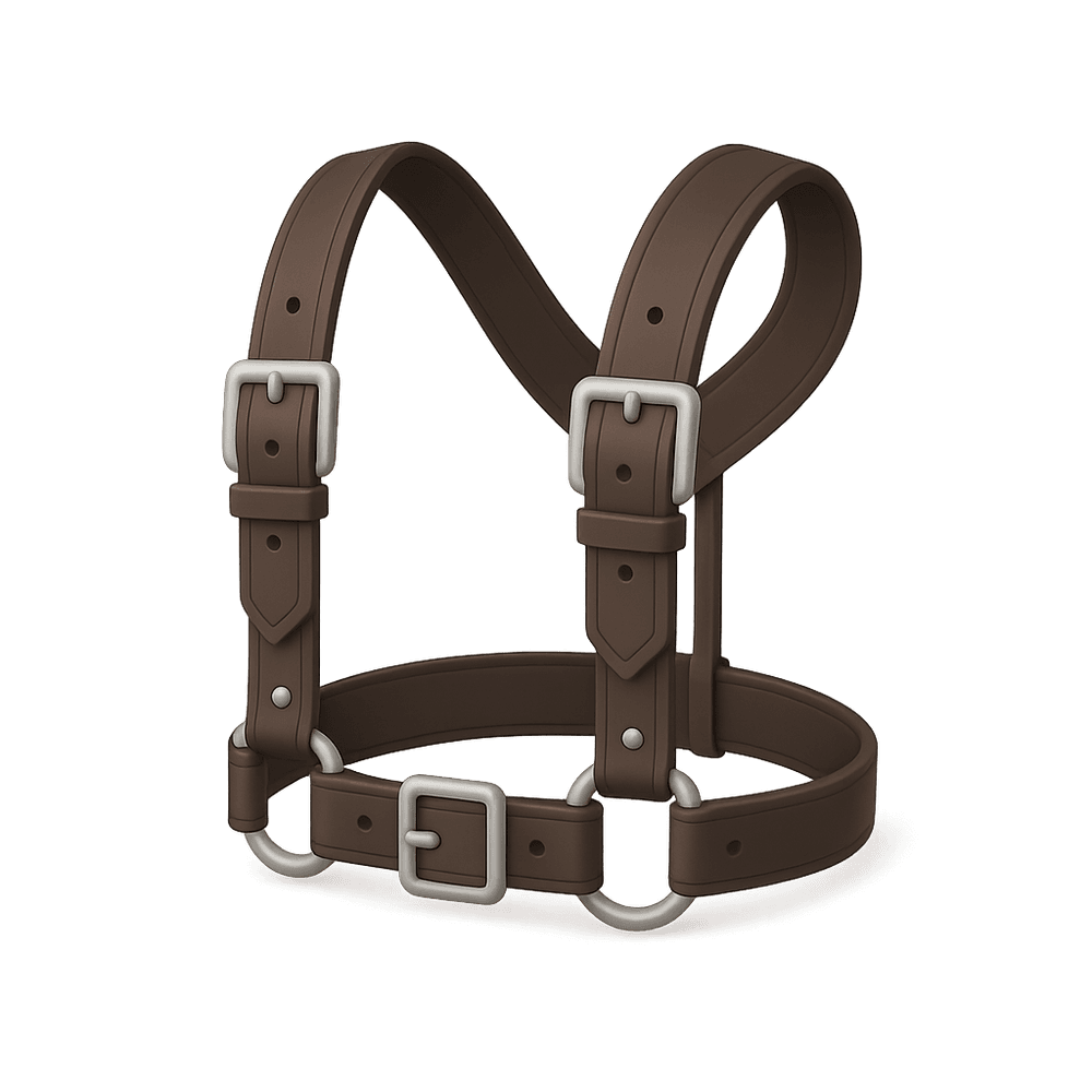 A torso harness is a wearable accessory designed to fit around the upper body, often used in fashion for layering, statement looks, or functional support. It can be made from various materials such as leather, fabric, or metal, and is popular in both streetwear and high fashion.