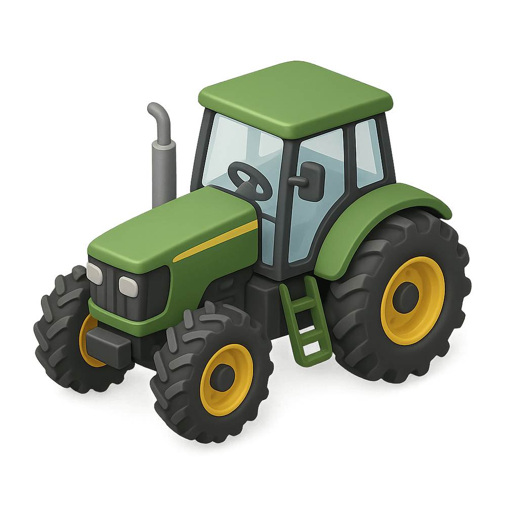 A tractor is a powerful vehicle designed primarily for pulling or pushing agricultural machinery or trailers. It is commonly used on farms for plowing, tilling, planting, and other tasks that require high torque at low speeds.
