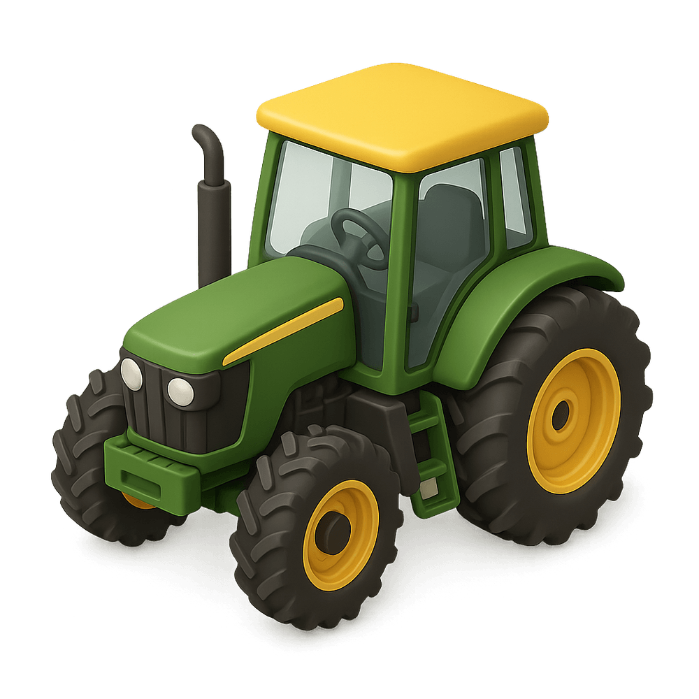 A tractor is a powerful motor vehicle designed primarily for pulling or pushing agricultural machinery and trailers. It is commonly used on farms for tasks such as plowing, tilling, planting, and transporting materials.