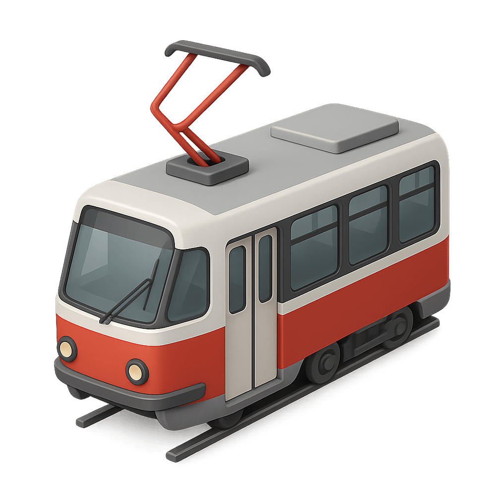 A tram is a rail vehicle that runs on tracks along public urban streets, used for transporting passengers within cities. Trams are an efficient and eco-friendly mode of public transport, often powered by electricity.
