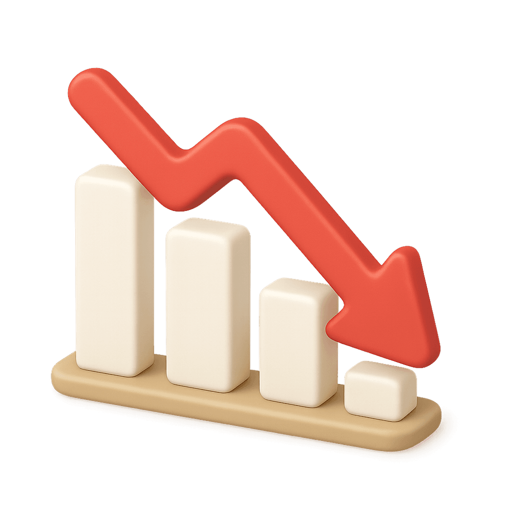A graphical symbol representing a downward trend, often used in interfaces to indicate decreasing values, negative performance, or declining metrics.
