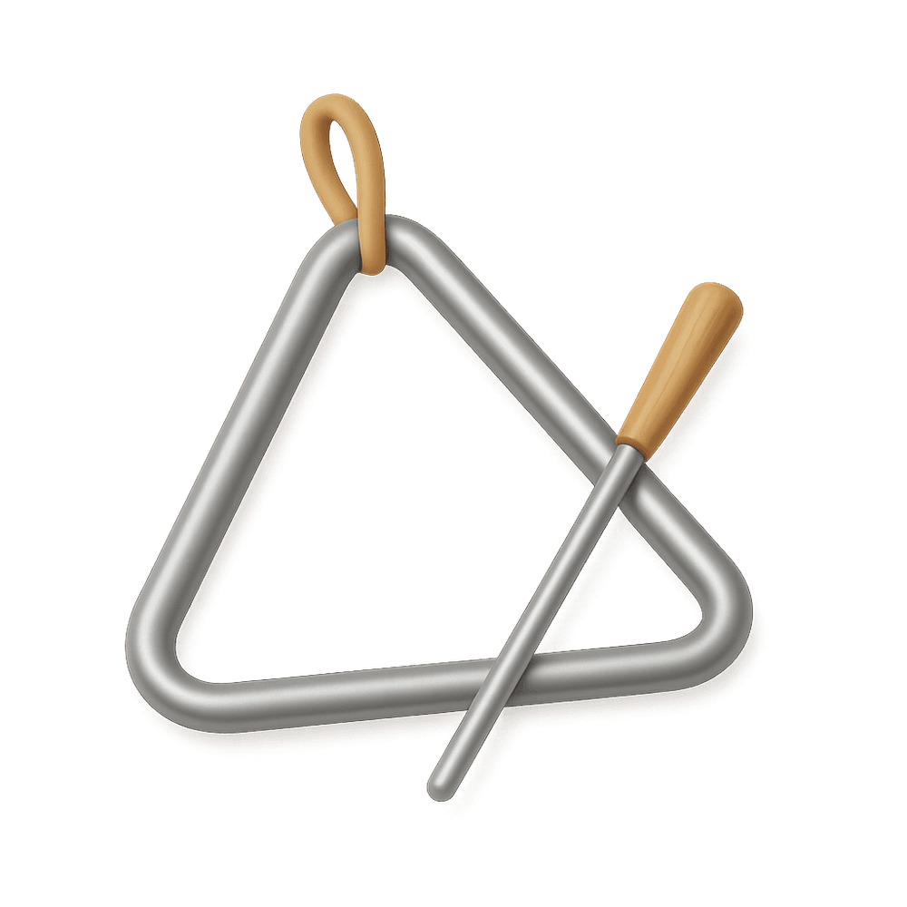 A triangle is a small percussion instrument made of metal and shaped like a triangle. It produces a bright, ringing sound when struck and is commonly used in orchestras, bands, and music education.