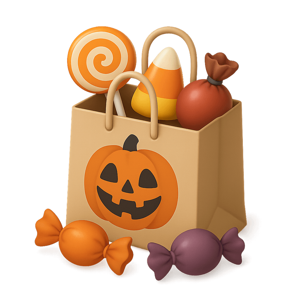 A Trick-or-Treat Bag is a festive container used by children to collect candy and treats while going door-to-door during Halloween celebrations.